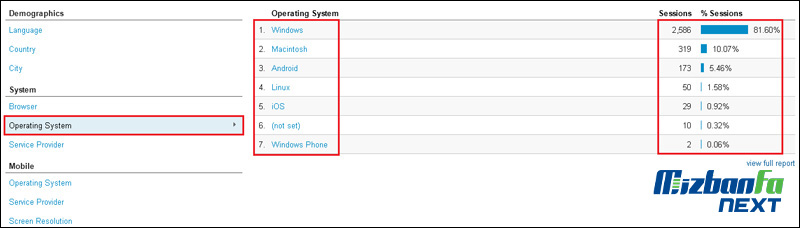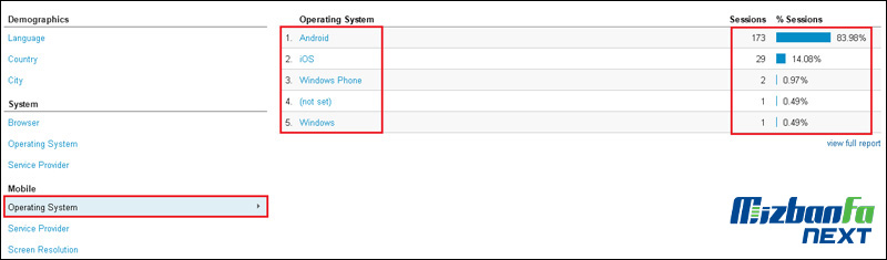 Operating System: این قسمت نیز مشابه قسمت قبلی سیستم عامل مورد استفاده ی بازدیدکنندگان ولی مربوط به دستگاه های موبایلی را نمایش می دهد.