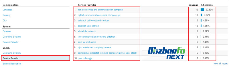 Services Provider: در این قسمت می توانید سرویس دهندگان یا ISP هایی که بازدیدکنندگان استفاده کرده اند را مشاهده کنید.