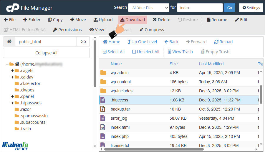 از ابزار download جهت دانلود فایل های داخل هاست استفاده میشه، به عنوان مثال قادر هستین داخل فایل منیجر، فایل مورد نظرتون رو انتخاب کنید و روی دکمه دانلود کلیک کنید تا بتونین اون فایل رو داخل کامپیوترتون هم داشته باشید. اگر تمایل دارید بدونید که چطور برای فایل های روی هاست لینک دانلود بسازید میتونید آموزش نحوه ساخت لینک دانلود برای فایل ها در سی پنل را دنبال کنید و در این زمینه اطلاعات به دست بیارید.