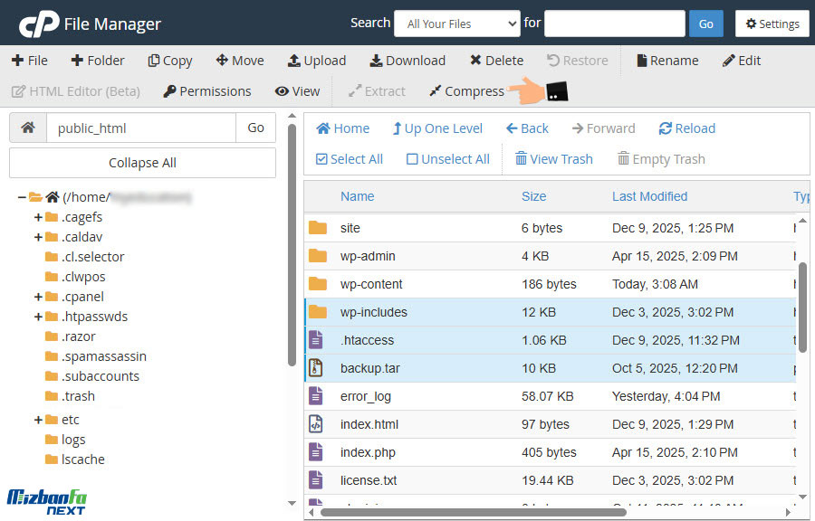 از ابزار compress جهت فشرده سازی فایل ها و فولدرها استفاده می کنیم، به عنوان مثال وقتی که تصمیم میگیرم تمام فایل ها و فولدرهای داخل هاستمون رو به یکباره دانلود کنیم ابتدا باید تمام اون محتویات رو توسط این ابزار به یک فایل فشرده تبدیل کنیم و سپس اون فایل فشرده رو دانلودش کنیم یا به هاست دیگه منتقلش کنیم. برای اینکه بدون زمان زیپ کردن فایل ها در سی پنل چه نکاتی را حتما باید رعایت کنید ویدیوی آموزشی در شده داخل این راهنما را حتما مشاهده کنید.