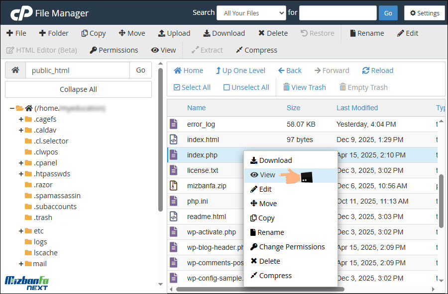حالا مجددا به صفحه public_html برمیگردیم و معرفی تمام ابزار های معرفی فایل ها میپردازیم.