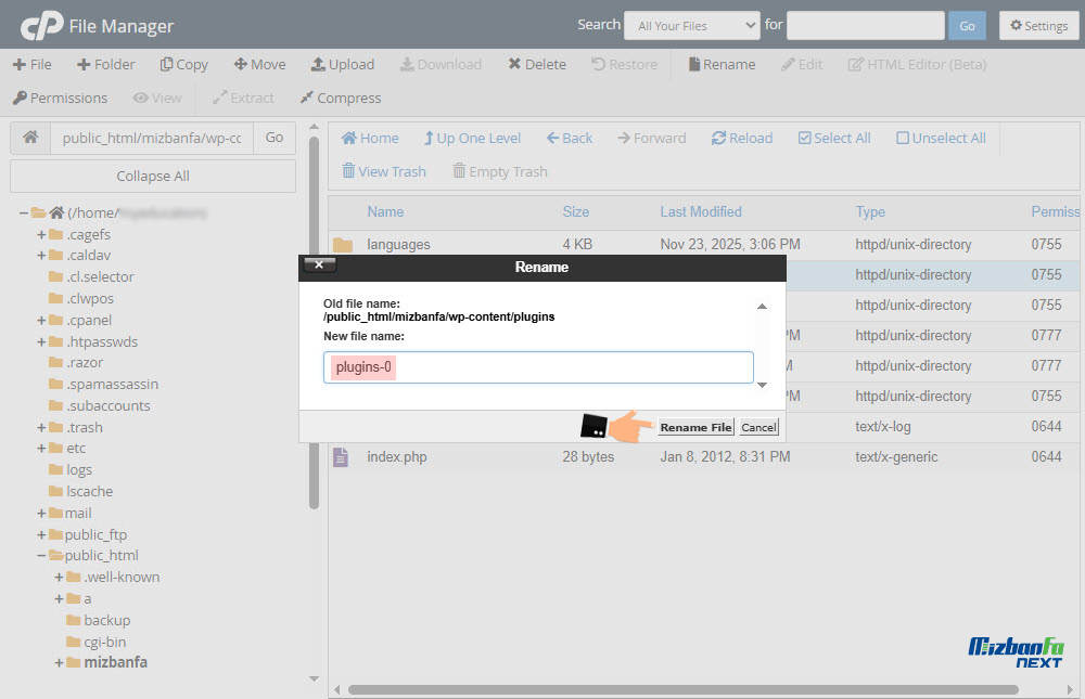 در اغلب مواقع با پاک کردن کش مرورگر و بررسی آدرس های درج شده در دیتابیس مشکل حل میشه اما اگر این خطا همچنان پابرجا بود باید سایر موارد که منجر به اختلال میشن را هم بررسی کنید یکی از شایع ترین موارد اینه که افزونه هایی در سایت وردپرسی شما فعال باشن که با هم اختلال دارن. استفاده از پلاگین های خراب یا منسوخ میتونه یکی دیگه از دلایل بروز خطا too many redirects در وردپرس باشه. برای اینکه مطمئن بشید مشکل به افزونه های شما مرتبطه یا نه می تونید تمامی این افزونه ها را به یک یکباره از طریق هاست غیرفعال کنید و نتیجه را در بازدید از سایت بررسی کنید. برای این منظور وارد پنل مدیریتی هاست بشید روی File Manager کلیک کنید. وارد بخش public_html بشید و به مسیری که وردپرس شما در اون نصب شده مراجعه کنید. در پوشه wp_content به دنبال پوشه plugins بگردید.