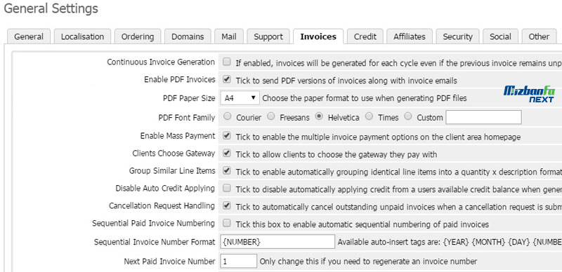 - Invoices: در این قسمت می توانید تمامی تنظیمات مربوط به پرداخت ها و صورتحساب ها را اعمال نمایید.