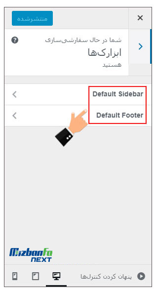 با استفاده از این قسمت می توانید به راحتی اقدام به مدیریت ابزارک های وب سایت خود در طی فرآیند سفارشی سازی قالب نمایید. با استفاده از ویجت ها می توانید انواع مختلف دادههای سایت مثل آیکون شبکه های اجتماعی، محتواهای چند رسانه ای و… را در بخش های مختلف صفحات وب سایت خود نمایش دهید.